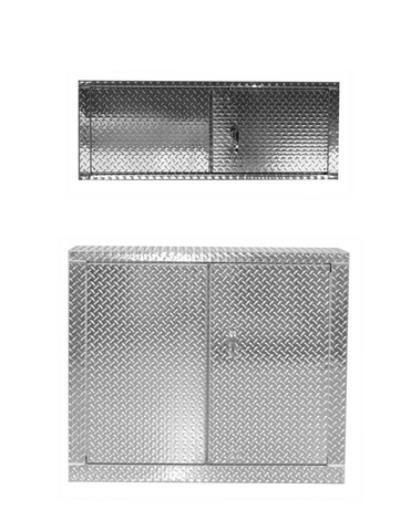 This 4 Foot Deluxe Cabinet Package is perfect if you are tight on space or if you want your work area to stand out from the rest. The diamond plate aluminum base cabinet features a fully adjustable 16 Inch deep shelf that you mount at the desired height. Locking doors that use a tamper resistant 2 point locking system. The counter top is smooth aluminum.
